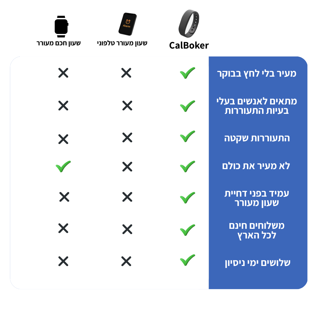 צמיד ההשכמה מבית CalBoker יעזור לך לקום בזמן ברוגע ובשקט.